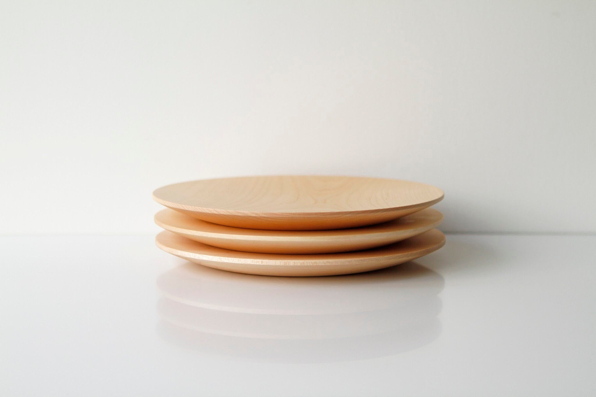 思わず触れたくなるような、なめらかな形状のウッドプレート。適度にある厚みと、裏側に向かう柔らかなフォルムが食卓にあるだけで特別な雰囲気を醸し出してくれます。