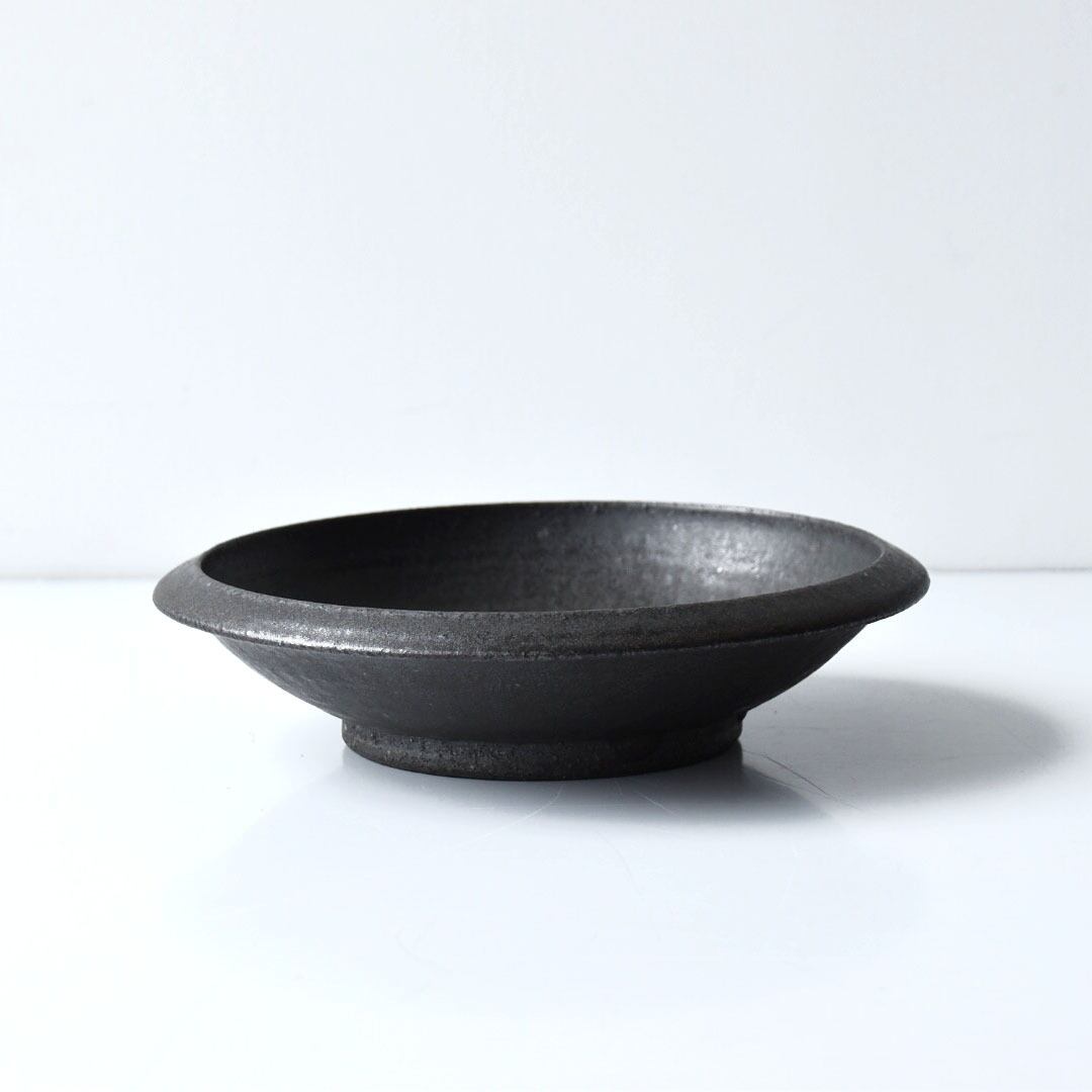 黒釉は、マットな質感の中に、ところどころに鉄点のように入った光沢や、土の表情も感じられ、黒でも重たくならず、モダンな仕上がりに。